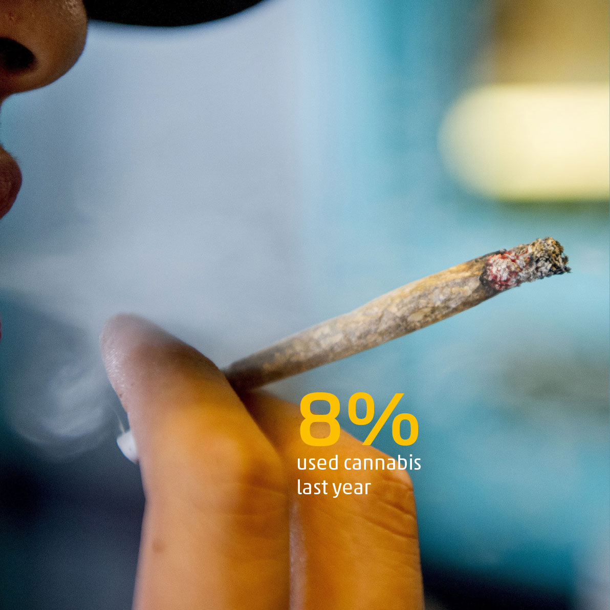 Twice as many men (10 percent) as women (5 percent) said they had used cannabis in the past twelve months. Among those in their twenties, 28 percent of men and 15 percent of women had used cannabis. These numbers have not changed in recent years. Cannabis use has been surveyed in a similar way in the Health Survey/Lifestyle Monitor since 2015.